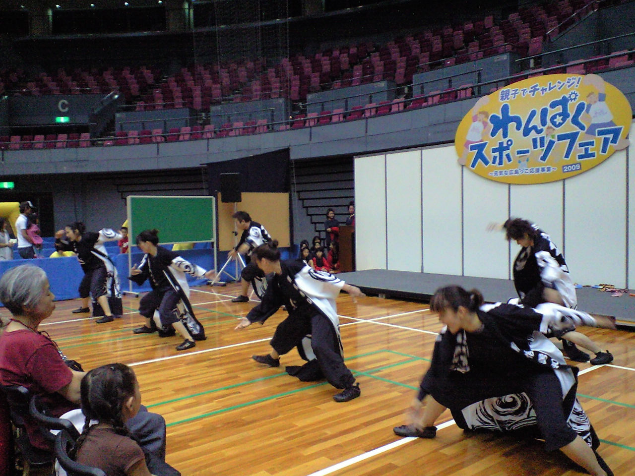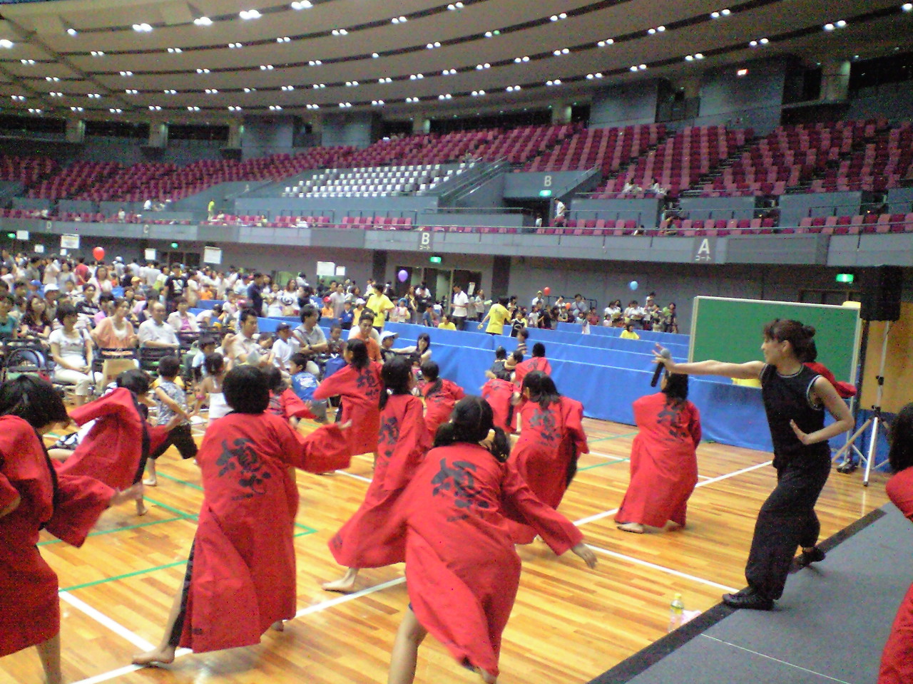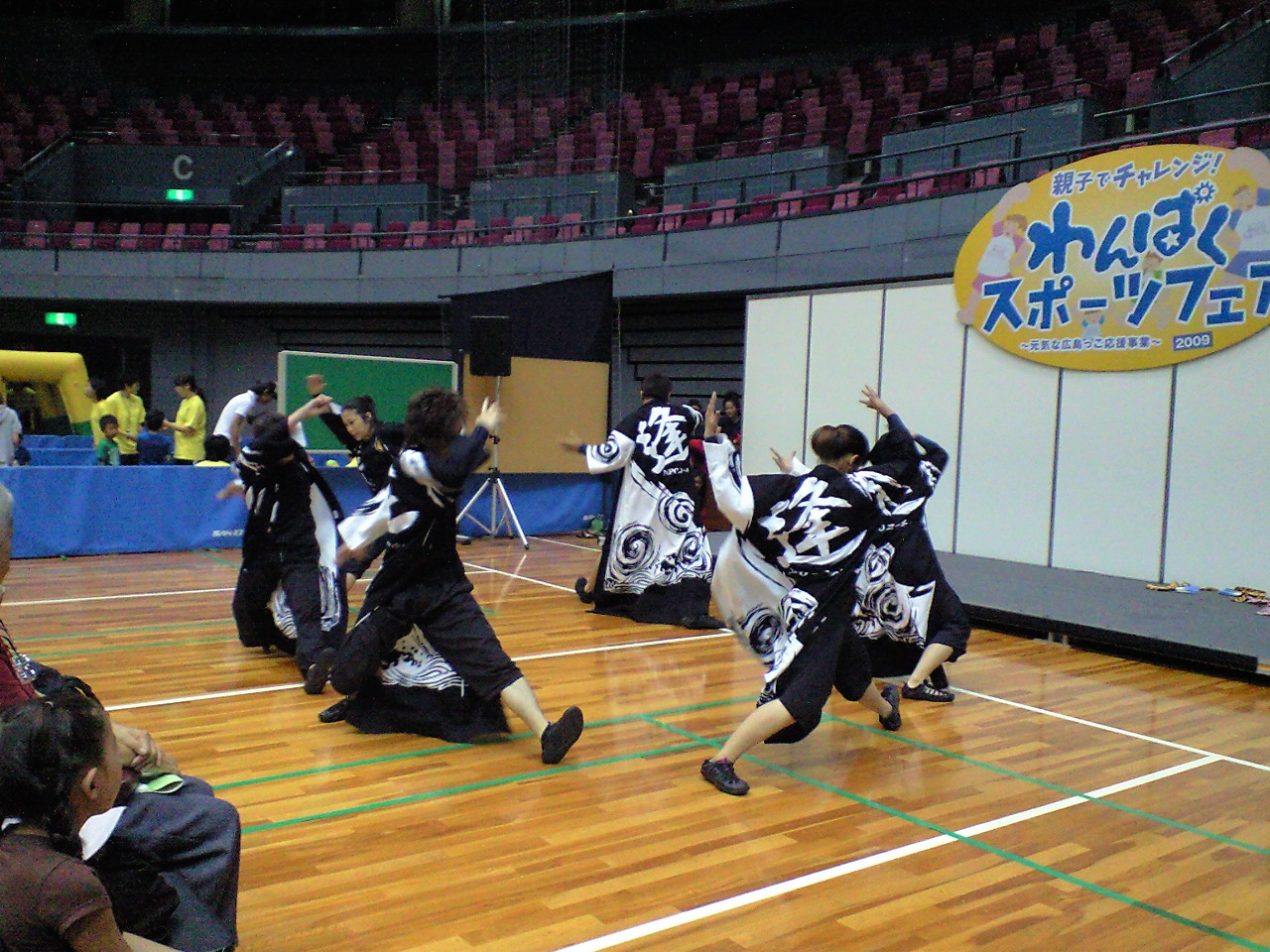 このイベントには、毎回 ソーラン演舞とレクチャーを依頼していただいております。今年は、「逢」、「基町ソーラン隊」、「翔龍」の3チームで弾けました ![]() 子供たちの「基町ソーラン隊」の踊りの完成度が高く、かなり評判が良かったように思います。 ![]() 全員でのオープニングは、神楽サイズから。 チーム分かれての演舞、最後のフィニッシュポーズはタワーで決め ![]() 全員参加の演舞では、迫力満点 息もピッタリ![]() 子供達に負けじと、チーム「逢」(この日は午前6人、午後からは3人編成でした。)も神楽サイズ披露 ![]() もちろんソーランも披露 (人数は少ないですが、迫力は出ていたんとちゃうかな![]() HIROMIさんを中心に、ソーラン踊りのレクチャー実施。その後会場の皆さん含めて、 ![]() 総踊り![]() ![]() ![]() 午後からは人数が少なく、 写真が撮れませんでした。(翔龍の皆さん、せっかく参加していただいたのに、勇姿が撮れませんでした。申し訳ございません。 )また来年呼んでいただけたら、みんなで元気いっぱい弾けよう ![]() CHU3