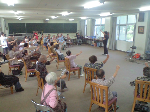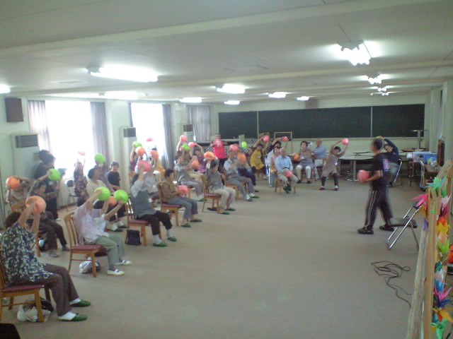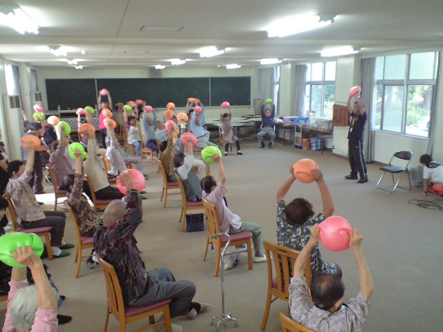 今日は、雨の中28名もお越しになりました。(大体平均、40名くらい?でしょうか)隣の建物で検診もあり、もっと少ないかと思いきや・・・大朝の皆さんは本当に熱心で、ありがたく頭が下がります。 昨日、よくよく考えてみると、この「でかけよぉや」は、今年で5年目になります。最初の2年くらいは社会福祉協議会の皆さんのおかげで、送迎などもありどんどん参加者も増えました。ところが、だんだん予算も取れない送迎も難しいという時期があり、一度は存続も危ぶまれました。 でも、参加者の皆さんの自主的な行動で,今に続いています。毎回200円を負担されることや、送迎が無くても自分たちで歩いて来てくださること、1回500円のレマンドタクシーを利用すること、家族が送迎してくださることなど、多くの方の協力の下、継続ができています。 もちろん、社協の皆さんのお力が本当に素晴らしいんです。いつも、勉強になります。ありがとうございます。これからも協力させていただきますので、この事業を続けてください。よろしくお願いいたします。 この「でかけよぉや」とは別に、H18年度/H19年度は「筋筋きらきら教室」という、特定高齢者向けの教室を、社協の主催で私たちも担当させて頂いておりました。この特定高齢者の皆さんは、なかなか外出などなさらない方が多く、教室に来られるのもようやくという感じでした。でも、その方達が、今もこの「でかけよぉや」にお越しになります。 運動なんかとんでもない!とおっしゃっていた方々が、今は、自主的に教室にお越しになっているわけです。行動や日常生活が大きく変化したと考えられます。このことを、JAFAフィットネス・サミット2009の「フィットネス指導実践報告会」に応募してみようと思います。こんな素晴らしい事例をたくさんの方に知っていただき、もっとこういう活動が増えていけばいいなと思うのです。 毎週水曜日9:30~11:00「でかけよぉや」が行われています。来週は何人お越しでしょう?皆さんに会えるのが、私も楽しみなんです。いつも、私自身も大笑いしながら1時間半が終ります。ちなみに最近は、ボール回しをしながら歌を歌うのが流行っています。今日は「でんでん虫」でした。しかも、私は「鼻の穴は三角にしましょう!」ってなことを言いながら、指導?させていただいているんですよ!! 大笑い・・・・・ Hiromi 忍者ブログ [PR]
