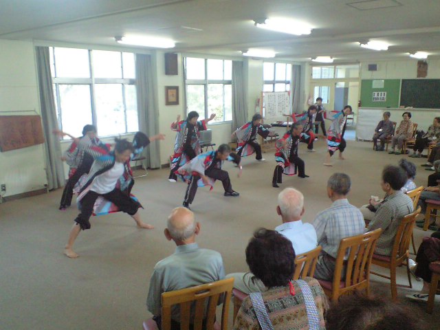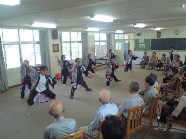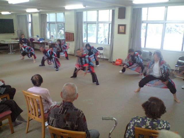 クリスマス会でお呼びいただいた、デイサービスH(SATOSHIの紹介)に再び呼んでいただきました。今回は、ガンバルーン体操も体験していただき、神楽サイズ(フルバージョン)&ソーランの演舞をさせていただき、最後には皆さんご一緒に、座・ソーランまで一緒に踊っていただきました。 こうやって再び呼んでいただけることで、繋がりができ、新しい出逢いも生まれることを、私たち「神楽&ソーラン舞人~逢~」は楽しみにしております。 ガンバルーン体操を体験していただき、遊び感覚で身体の機能改善運動。 皆さん、楽しんでいただけましたか ![]() ん~、かなりきついぞぉ~ ![]() まだまだ、皆さんにも体験していただき、 踊ってもらいましょう![]() 皆さんもカッコ良く、決めポーズ (ヤァー )今回、お呼びいただき、ありがとうございました。 ![]() また次回、お誘いくださいね。 CHU3