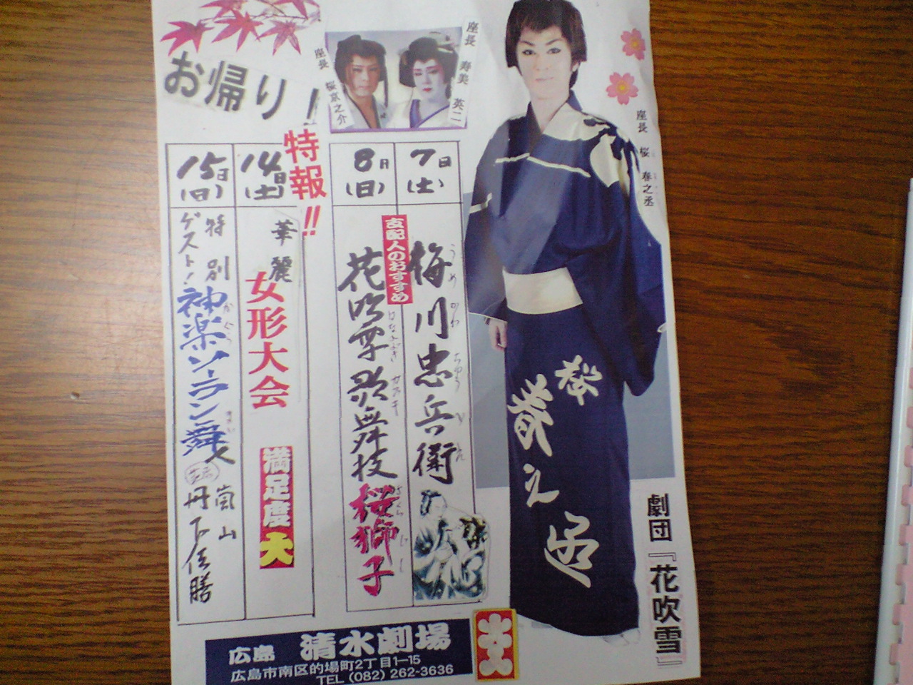 演舞終了後、即効着替えて、まずは差し入れのビールにて「 乾杯 」その後、正式に移動して打ち上げのし直しです。 今回の場所は、アントニオ猪木酒場です。 店に入るときにはゴングが鳴り、120分1本勝負の始まりです。 中央には、リングをイメージしたバーカウンターがあります。 今回予約した個室は、昔のスナック風に仕上げたラウンジでした。 他にもこんな風な部屋が、店の中にあったんです。 ひとつの店の中でも、いろんな雰囲気を楽しめる店作りでした。 料理や飲み物の名前も変わっていて、「アトミック・ドロップ」「コブラツイスト」「ギブアップ」等のプロレス用語や、「ラジオ体操2日後」「赤い悪魔」なんか、訳の分からん名前の物が多かったです。 店員のテンションも高く 、サラダを持ってくると、「1、2、3サラダー 」と雄叫びをあげます。(もちろん、私たちもですが。)今回は、乱れてヘベレケになる者もおらず、わりと冷静な飲み会になっていたように思います。(自分たちの判断ですが。) 店にはこんなものも置いてあり、しっかり 記念撮影しちゃいました。ちなみに、店内の モニターで上映しているのは、昔の猪木の試合ばかりです。さらに店内の BGMは、「INOKIボンバイエ」が延々と流れています。てっ、言うか、それしか流れていませんでした。この店は、猪木ファンの方にはたまらない、興奮の世界でしょうね。 さぁ 次は、ゆかたできん祭です。(頑張って、練習しよう )CHU3