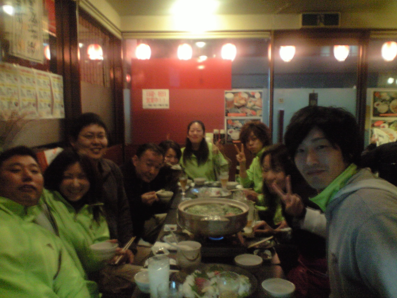 HIROMI,CHU3,YUKI,SATOSHIの4人でお伺いしたんですが、話の流れで、明日の 演舞に参加することになりました。(ライオンズクラブの新年会やそうです。) 神楽サイズにソーラン節、フルバージョンの2本立て。 (他のチームの振り付けなんですが、僭越ながら修正させていただき、『神龍』にとってもNEWバージョン )今年も、いろんなチームとコラボレーションしていきますよ ![]() 練習会終了後は、チーム『神龍』代表の店「河内屋」にて、ビデオを見て反省会&復習。 更に、小腹が空いているところに、 特大雑炊![]() あったまった~、ごちそうさまでした。 ![]() 明日は、 頑張ります![]() CHU3
