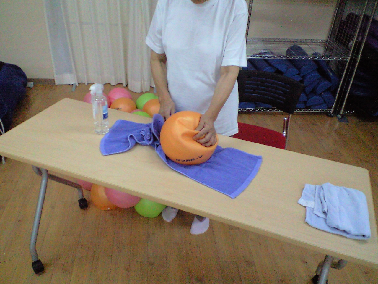 ガンバルーン の洗浄消毒を行なっております。健康運動教室でたくさんの方に使っていただいている分、汚れもつきます。(目に見えない汚れもつきますしね。) O-157やサルモネラ菌も除菌できるんですが、からだには優しい、超電解アルカリ洗浄水を使っております。(健康教室にもって行っている、飲料用の電解還元水とは別物ですよ。) この作業、完了するのに半日以上はかかります。(なんせ、150個の ガンバルーンを1個ずつですから・・・多いときには、200個以上したことも。 )この作業をしてくださっているK.Nさん、ありがとうございます。 ![]() 健康運動教室に参加していただける方に、清潔な ガンバルーンで、安心安全気持ちよく運動してくださいね。CHU3