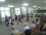ボール体操 & 神楽サイズ& ソーランをやってきました。 ボール体操から・・・今回の神楽サイズとソーランは、それぞれフルバージョンで演舞させて頂きました。 久々に姫パートが振り付けに入ったんで、ちょっと焦りました。 ![]() ![]() ![]() 迫力ある演舞に見えたでしょうか ![]() やっぱり、最後は皆さんにも踊って頂き、 元気になって頂きたいので(十分元気がある方たちでしたが)、座・ソーランを踊り終了とさせて頂きました。お誘いいただいたスタッフの方は、HIROMI&YUKIがお邪魔させていただいている、神楽団の笛をやっている方だったんです。(神楽を見る目は肥えているんで、演舞はいつも以上の 緊張感がありました。)終了後には、こんな私たちでもヒーロー扱いしてくださって、握手攻めでした (さすがに、サインまでは求められませんでしたが。)この日の体験のお礼に、この作業所で作られている、自家製クッキーに自家製パウンドケーキをたんまりといただきました。 (早速いただきました。お世辞抜きに、美味しい~ )皆さんに 元気を与えるつもりが(偉そうですが )、逆に、私たちが 元気を頂いたように感じます。とても楽しかったです。 また、呼んでいただけたら幸いです。 ありがとうございました。 CHU3